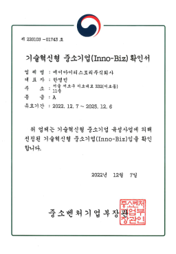 AITStory는 검증된 기술력과 탄탄한 진입 이력으로 다양한 전문 분야의 사업 영역을 확장하고 있으며 이노비즈 인증을 획득함으로써 공식적인 기술력을 인정 받았습니다.